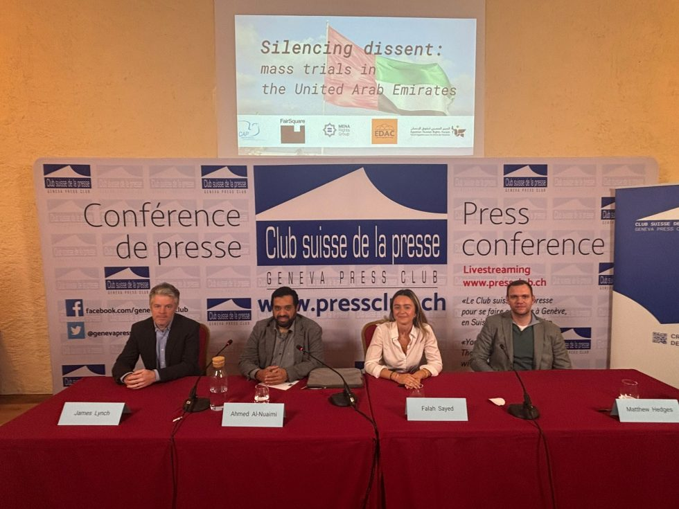 On 2 October, FairSquare’s James Lynch moderated Silencing dissent: mass trials in the United Arab Emirates, a panel discussion at the Geneva Press Club, featuring Emirati human rights defenders and experts.